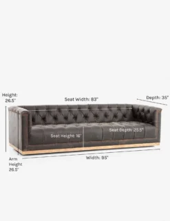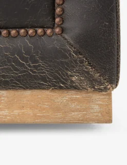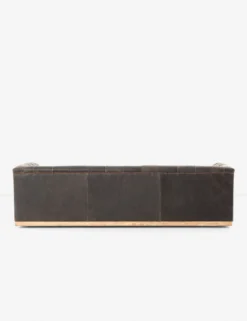 A tufted style with aged bronze nail heads give this sofa a traditional library feel while the rectangular wood base gives it a modern and elevated edge. We love styling it with mid-century pieces and industrial accents for a layered look.