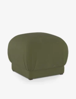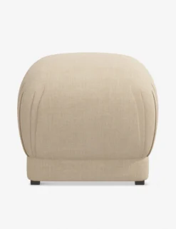 An upholstered cushion-top gives this ottoman its pouf-like design—with pleated corners for a chic touch. We love it styled as an accent piece in a collected living space surrounded by organic materials and natural textures or as a functional addition to a cozy nook.