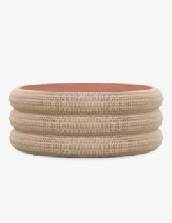 Thoughtfully dynamic and artfully refined—the Castaneda coffee table elevates indoor-outdoor style. The soft-lined silhouette is woven from all-weather wicker and fitted with a durable Dekton top to bring plenty of texture with a modern edge. This chic round coffee table offers a sculptural anchor for a sunroom or patio lounge.