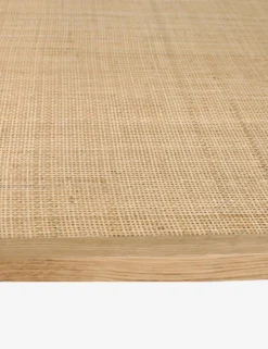 A timeless side table made with a solid oak frame, natural cane shelf, and tempered glass top that offers a warm, modern tone to any living space. The perfect end table for a relaxed, chic living room or home office.