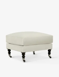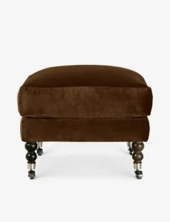 Add a touch of vintage flair to your home office or lounge with this timeless ottoman. Antique styling pairs velvet upholstery with ornate, turned legs with wheels to effortlessly float in the room. Pair this plush footrest with the Fabienne collection or style it as a standout addition to a collected space.
