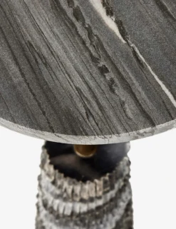 Bring a textural moment to your design with the Fallow side table. The rough marble base is channel-grooved, creating a sense of movement in the striated stone. We love the sleek contrast of the brass-finished stem and polished round top—the perfect end table for sumptuous seating.