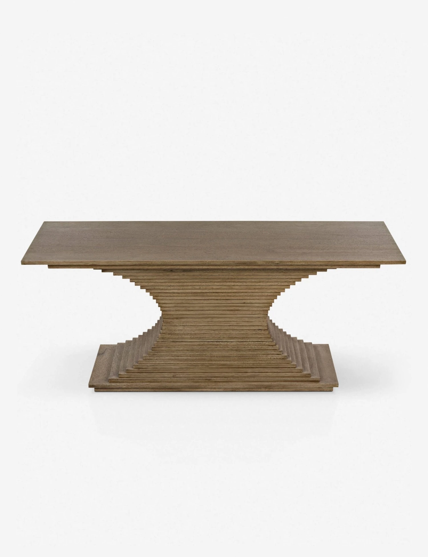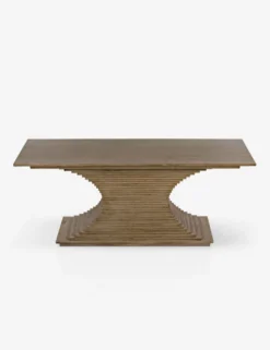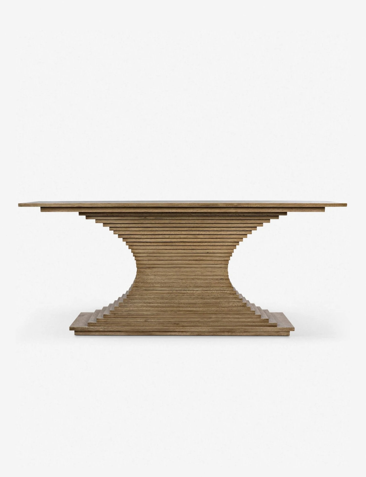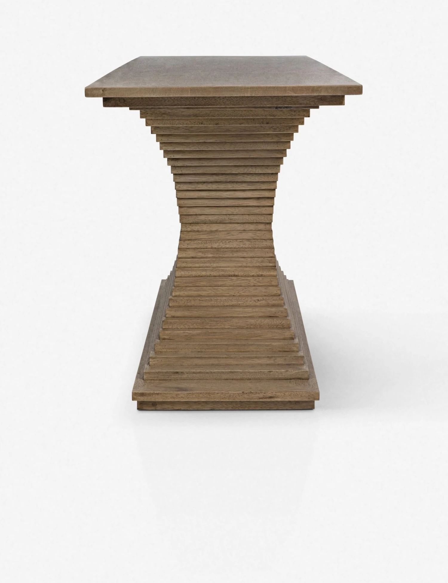 Stacked walnut pieces with a bleached finish lends this console table a layered, hewn look, while the curved design adds depth and movement. Place this piece in your entryway and decorate with minimal accessories or use it as a sideboard in your formal dining space.