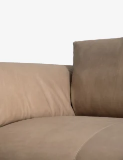 Timeless materials in a modern design give this living room sofa plenty of stylish appeal. From the folded shape of the arms to the supple leather upholstery, this bench-style couch offers an utterly inviting seat set on a light iron frame. Anchor a casual lounge with mid-century undertones or upgrade your look with this trend-forward design.