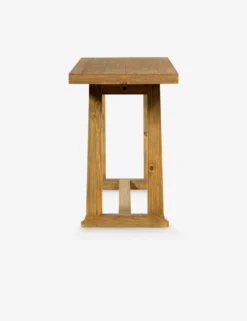 Style your space for timeless appeal with this solid wood console table. The trestle-style construction offers a sturdy bearing that grounds the room with rustic warmth. A honey finish brings out the natural grain of the wood for organic texture, whether styled in your lounge or placed as an entryway table.