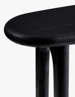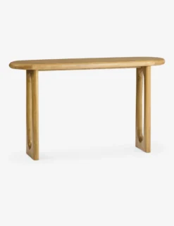 The Hesh console table pairs soft lines with the natural grain beauty of oak. Carved cutouts on the legs bring a sculptural quality to the design—offering an airy look with a sturdy bearing. Whether styled as an entryway table or living room console, this piece brings an artful edge to modern decor.