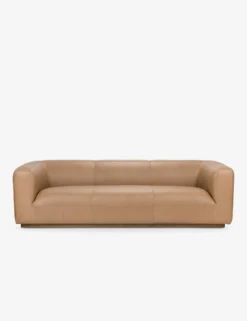 Trim upholstery highlights the sculptural lines of this eye-catching sofa. Style this long, plush couch for a modern tone with a cozy feel in your family room or lounge.
