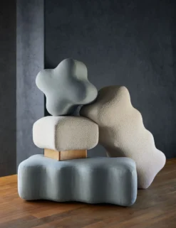 Eny Lee Parker brings her thoughtfully grounded approach—an embrace of slowness, intention, and respect for nature—to an exclusive collection with Lulu and Georgia. Inspired by bojagi, a traditional wrapping cloth held dear in Korean culture, this ottoman features a plush boucle cushion set on a light wood base. Concave sides bring a subtle drama to the sculptural shape.