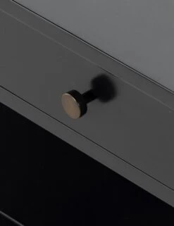 Blending sleek style with industrial undertones, this black-finished iron coffee table casts a clean, spare silhouette with bronzed hardware for modern appeal. Two drawers and a lower shelf offer a practical touch to this middle table design.