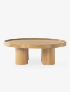 The McNamara collection is soft, modern, and full of organic warmth. Contrasting legs and a raised rim tabletop fashion, this round coffee table design with a stylish edge. A sculptural statement in any space, this wood coffee table is set for sleek appeal.