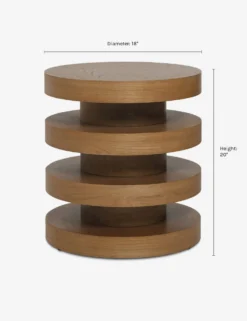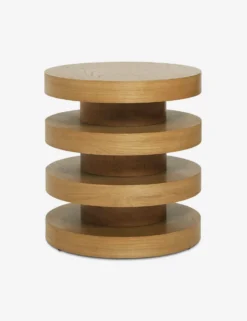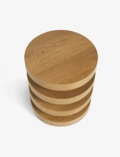 Elevate your living space with a wooden side table that pairs a sculptural silhouette with a natural grain texture. The stacked cylinder end table design offers a dynamic look to pair with a clean-lined sofa or accent chair with modern appeal. This piece is from our exclusive Sarah Sherman Samuel collaboration and features all the trademarks of her warm, edited style.