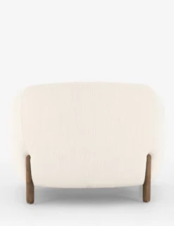 A decorative chair with an inviting, cozy look. Adding this large, rounded accent chair to your living room or bedroom brings natural elements into the space, thanks too textured fabric and grainy wood legs.