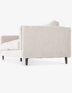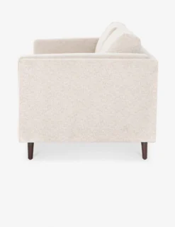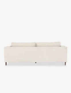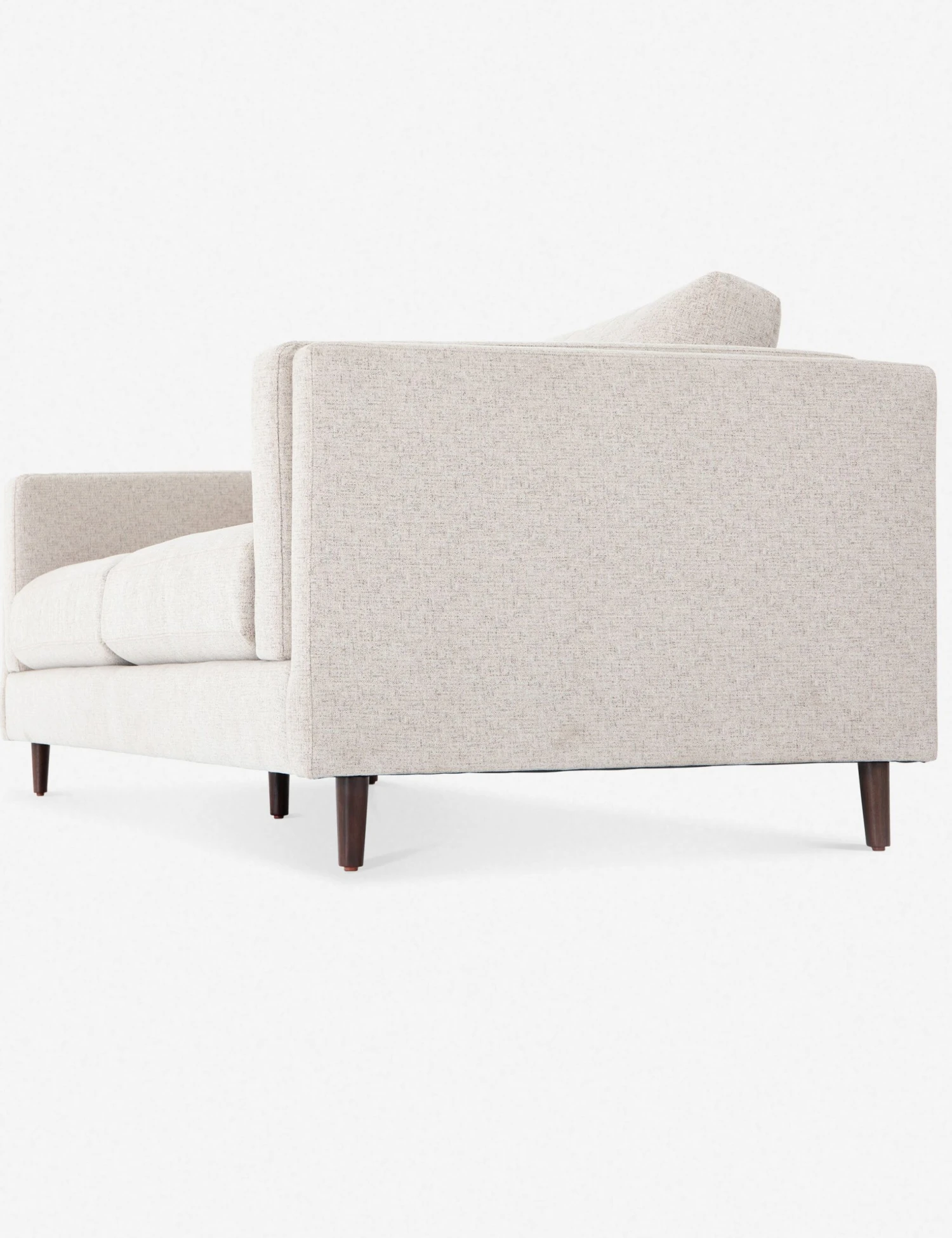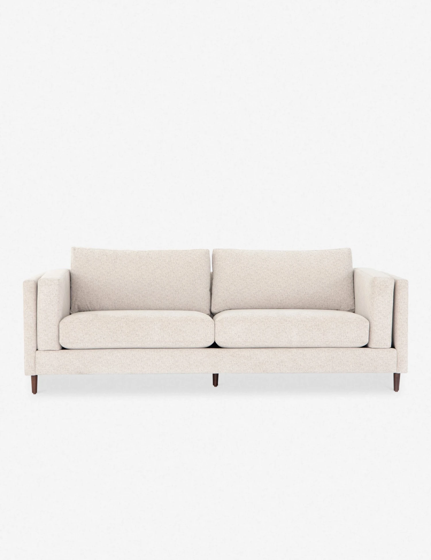 Clean, layered lines inspire a delicate elegance in this dynamic sofa. The tapered, auburn-finished legs offer an airy elevating touch that complements the light-toned, performance-fabric upholstery for a visually light profile that belies a spaciously substantial living room couch.
