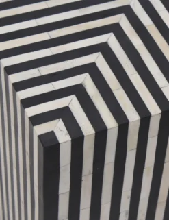 A sleek cubic form comes alive with a bold deco veneer in this side table. The contrast of the vibrant geometry creates striking impact in an eye-catching design. Pair this black and white end table with our Trendyl Coffee Table or style for a unique accent in an eclectic space.