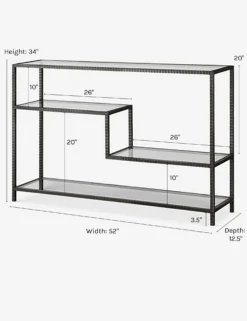 Industrial style meets functional design. This iron-framed console table features multi-level shelving for a unique take on modern decor; our stylists recommend playing with proportion and adding a pop of greenery to get a magazine-worthy look.