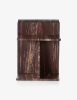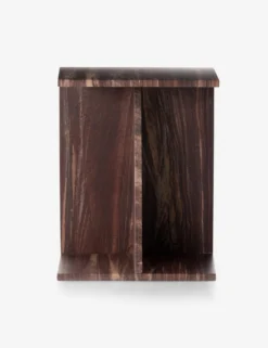 This side table offers up angular appeal with its sculptural design. Made from solid marble, each table features a unique pattern of stellar striations in rust and grey hues. Style this luxe end table in a cozy, modern space to add a geometric accent with textural contrast.